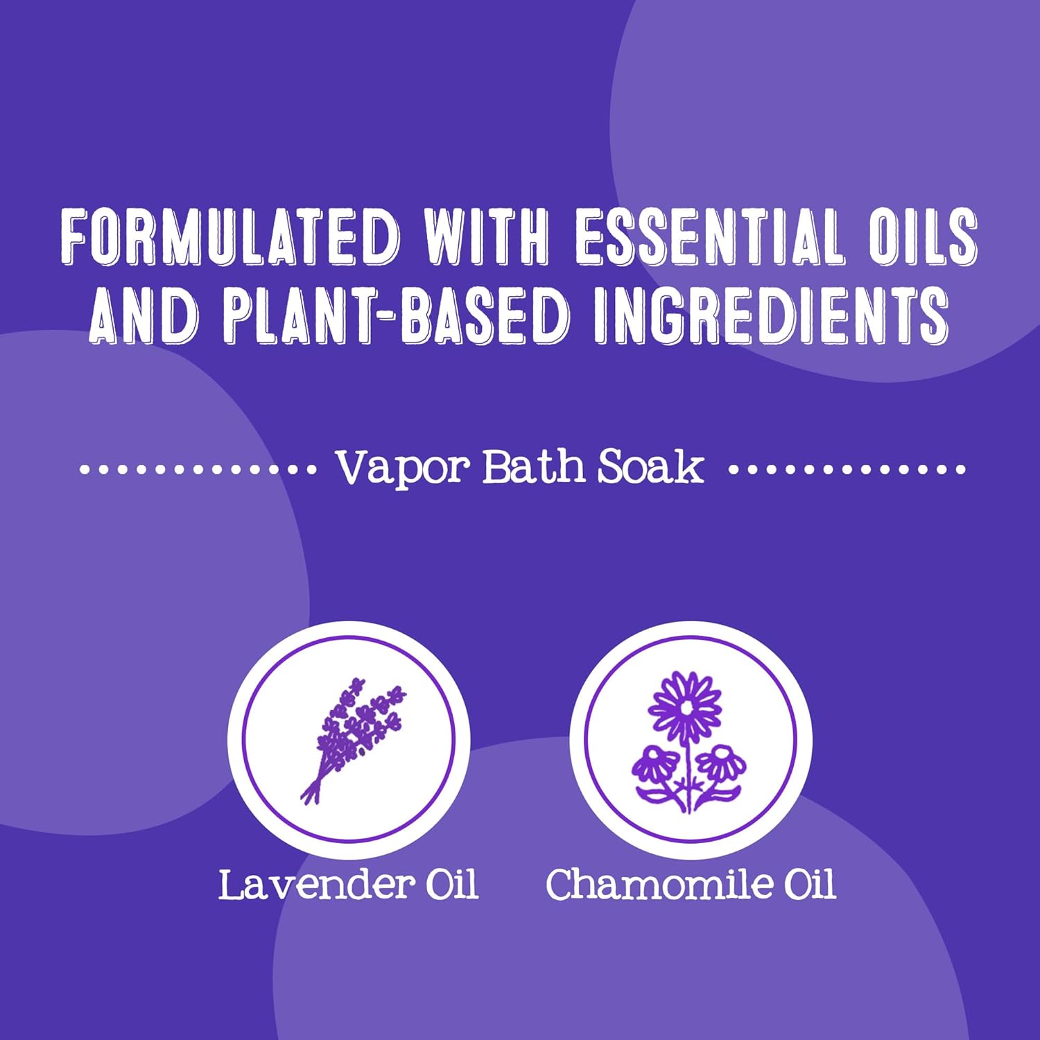 Pure Essential Oils: Specifically designed for young, sensitive skin, the Slumber & Sleep Vapor Bath Soak contains a natural, concentrated blend of Lavender and Chamomile Essential Oils along with plant-based ingredients. The pure Essential Oils’ soothing scents can calm your child to help them sleep peacefully.