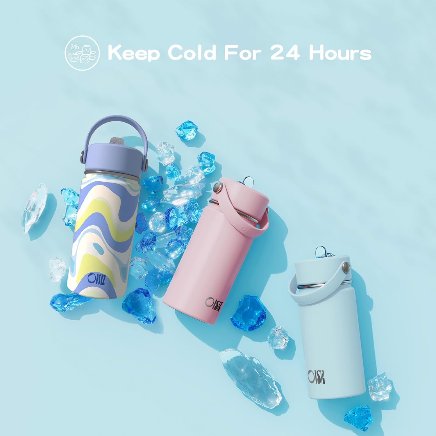 OISIZ kids water bottle uses triple-layer insulation technology to keep water cold for 24 hours.