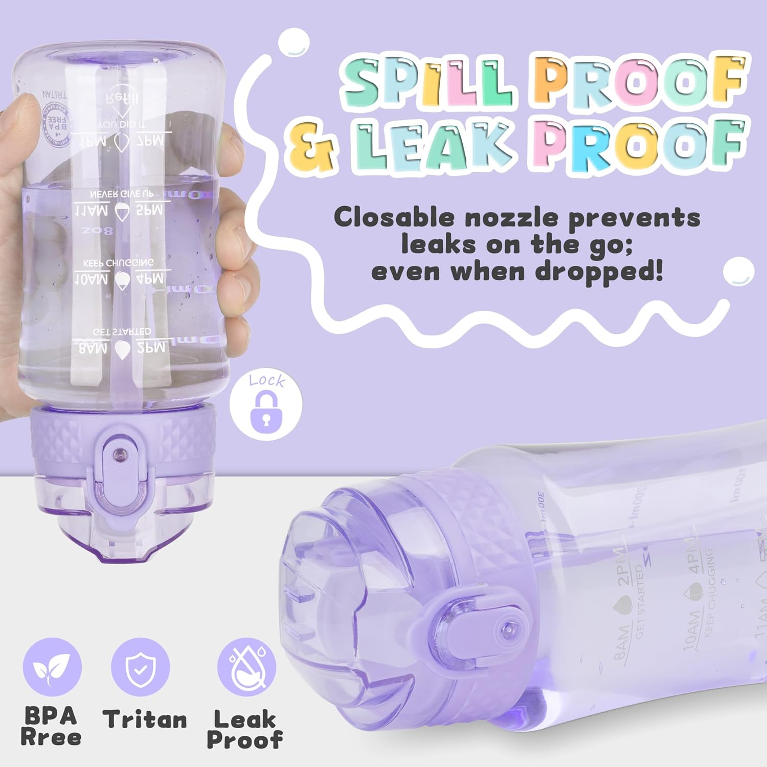 OLDLEY 12oz Kids Water Bottle for School – Motivational With Silicone Straw, Leak-Proof Tritan BPA-Free, Reusable for Girls Boys, Amethyst