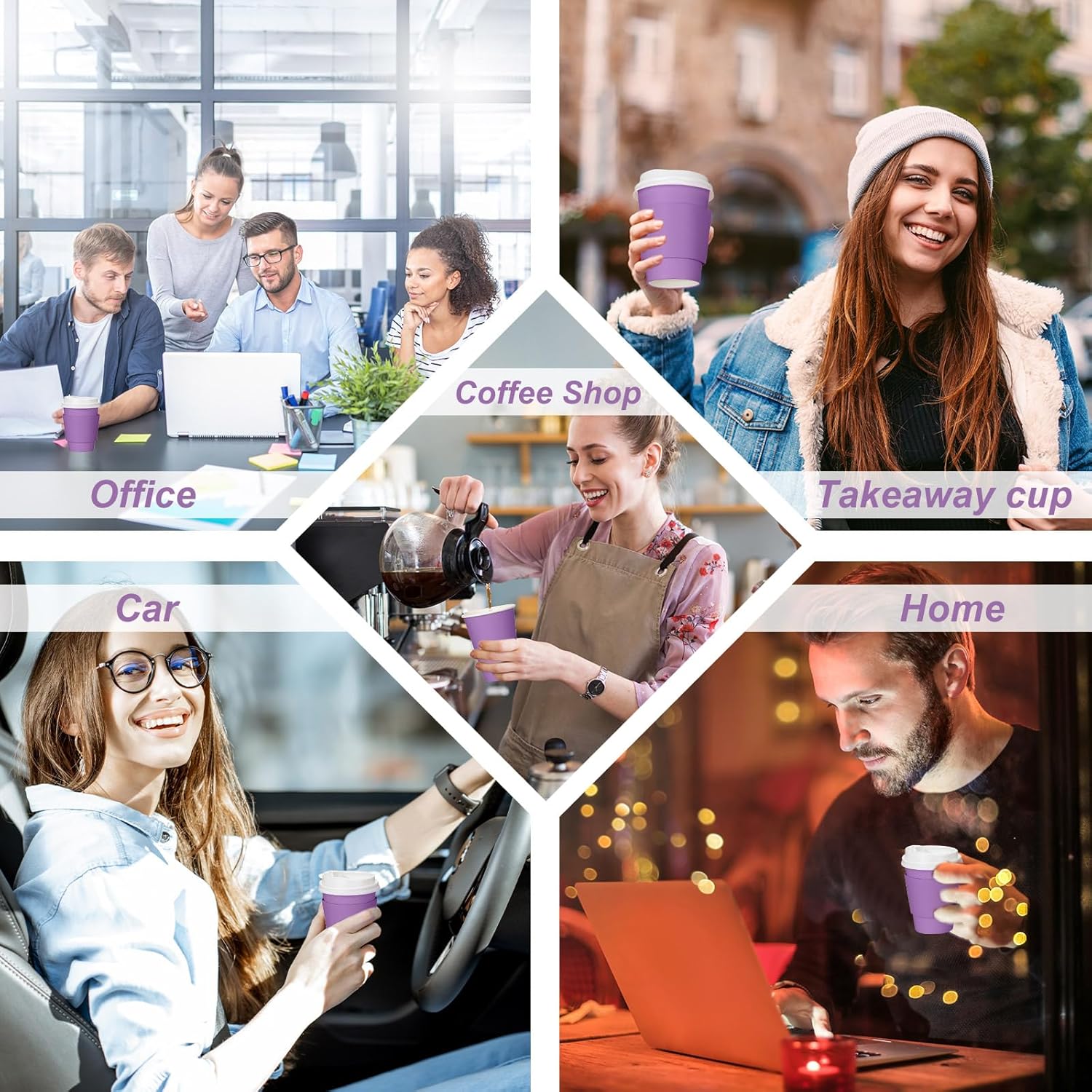 Heat Resistant Design: our purple paper coffee cups with lids and sleeves are insulated and hard enough and will not harm your fingers when storing hot or cold beverages, can keep the beverage at a drinkable temperature and taste guaranteed