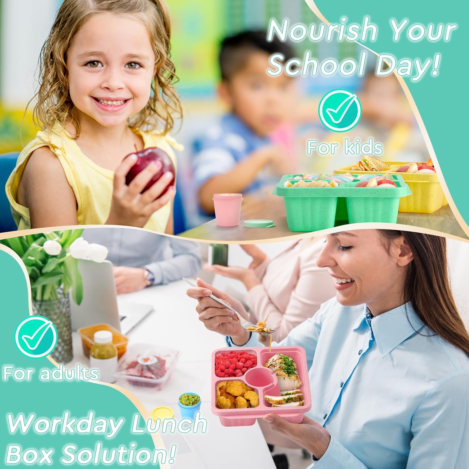 Vibrant 4-Pack Bento Boxes: Elevate your meal prep with our 4-pack bento boxes, each in a fun, vibrant color. Each container has a capacity of 550 ml (18.6 oz) and features 3 compartments, making it easy to pack a variety of meals for both kids and adults. Plus, enjoy 4 bonus deep sauce containers perfect for your favorite dips