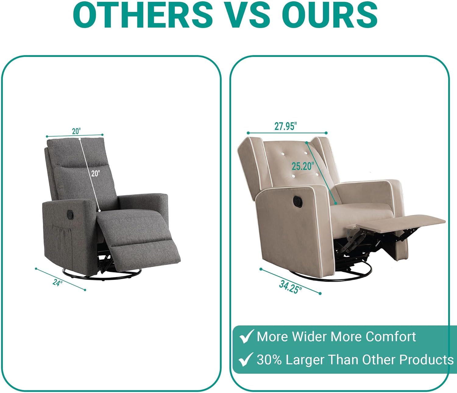 Sturdy & Durable: Designed with a strong metal base and solid wood finish, this nursery chair supports up to 250 lbs. Its microfiber material and super-soft spring core foam padding ensure durability and long-lasting comfort.