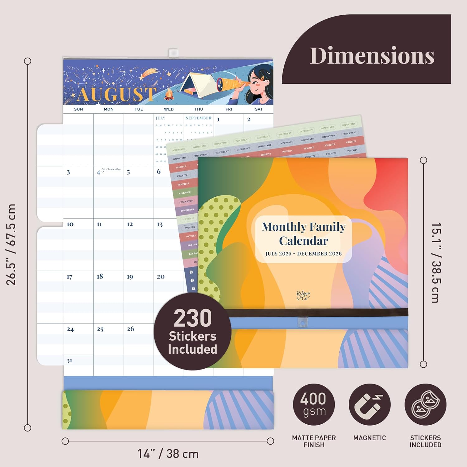 Rileys & Co. Mom Calendar 2025 43.5cm X 67.5cm, Family Wall Calendar for Family Activities, Magnetic Wall Calendar With Option to Hang, Moms Plan It Calendar for Shopping List, Events, and Trips