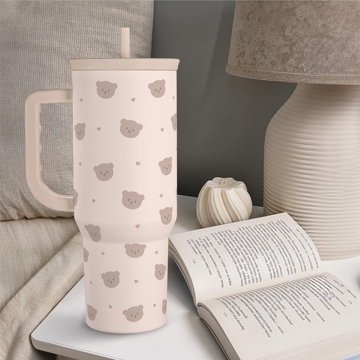 SANDJEST Bear Tumbler with Handle, Insulated Cup Stainless Steel Travel Mug Cup, Gifts for Women Girl, 40oz
