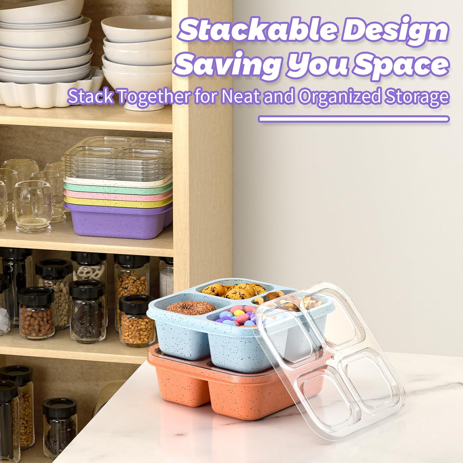 These reusable snack boxes have made my life so much easier! The 7-pack is perfect for prepping meals or snacks ahead of time, whether it’s for kids, work lunches, or just staying organized at home. I love that they come in multiple colors â it helps me quickly tell whatâs inside or assign certain colors to different family members.Theyâre really sturdy and donât feel flimsy like some other containers Iâve tried. Iâve microwaved them, tossed them in the freezer, and run them through the dishwasher multiple times â no warping, no staining, and they still look great. I also appreciate that theyâre BPA-free, which gives me peace of mind when using them for my kids.The stackable design saves space in my fridge and cabinets, and the lids snap on securely without being a pain to open. Overall, these have been a great buy. Highly recommend if you’re looking for an easy, eco-friendly way to prep and store meals or snacks!