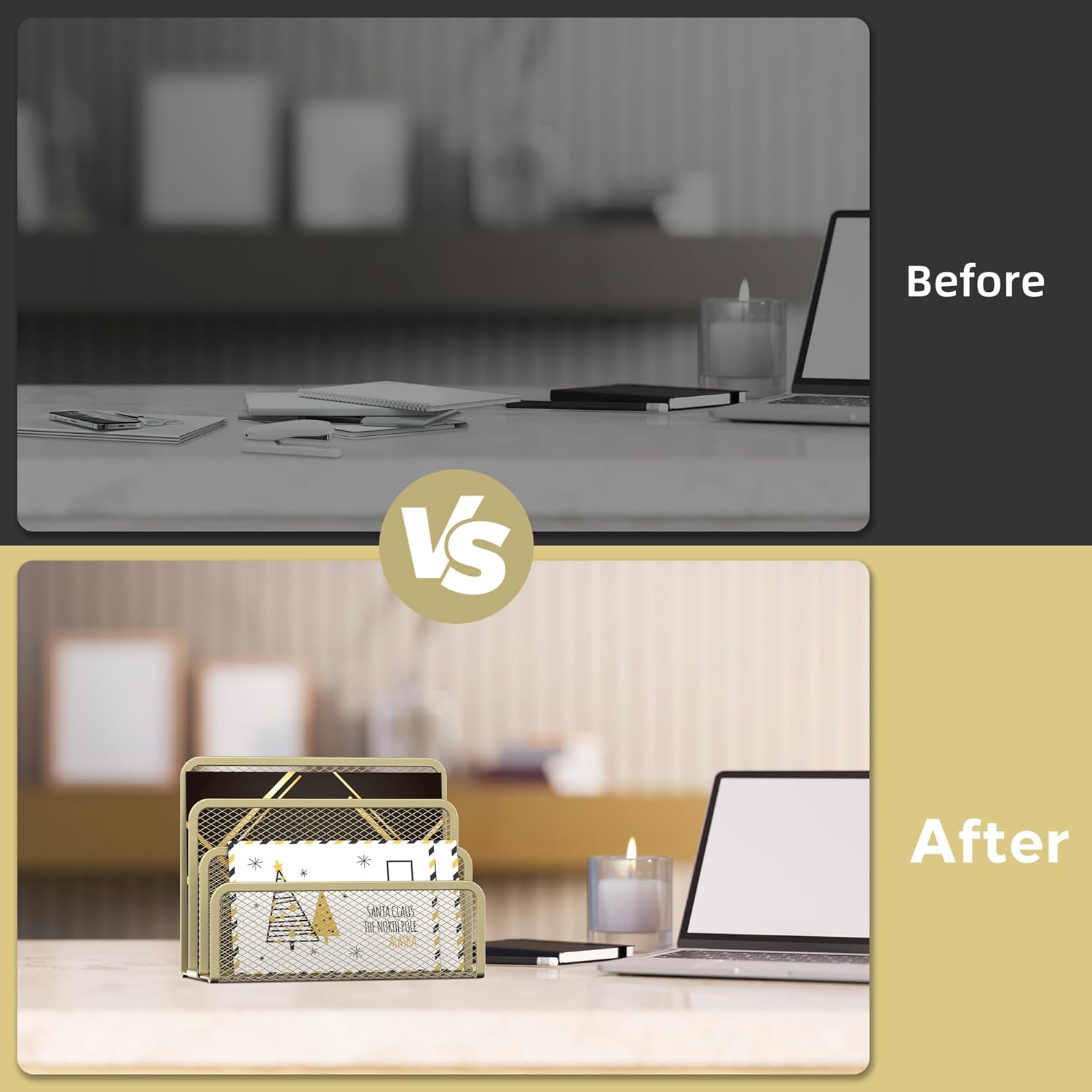 [Mesh Metal Materials] Crafted from durable metal mesh, our 3 section mail organizer countertop stands out for its quality and strength. Designed to resist damage and deformation, this letter organizer is a sturdier, more durable option compared to the typical plastic file holders on the market.