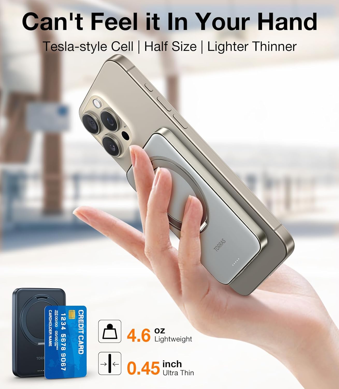 TORRAS 5,000mAh Magnetic Portable Charger Power Bank with Stand, Fast Charging Slim Thin Compact Wireless Magsafe Battery Pack for iPhone 15/15 Pro Max/14/13/12/ Samsung Galaxy S24 Ultra, Titan Gray
